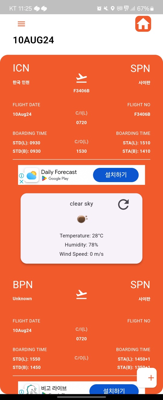 비행 기장이 필요한 정보가 무엇일까를 조사한 결과 일정에 이어서 날씨 정보였다.