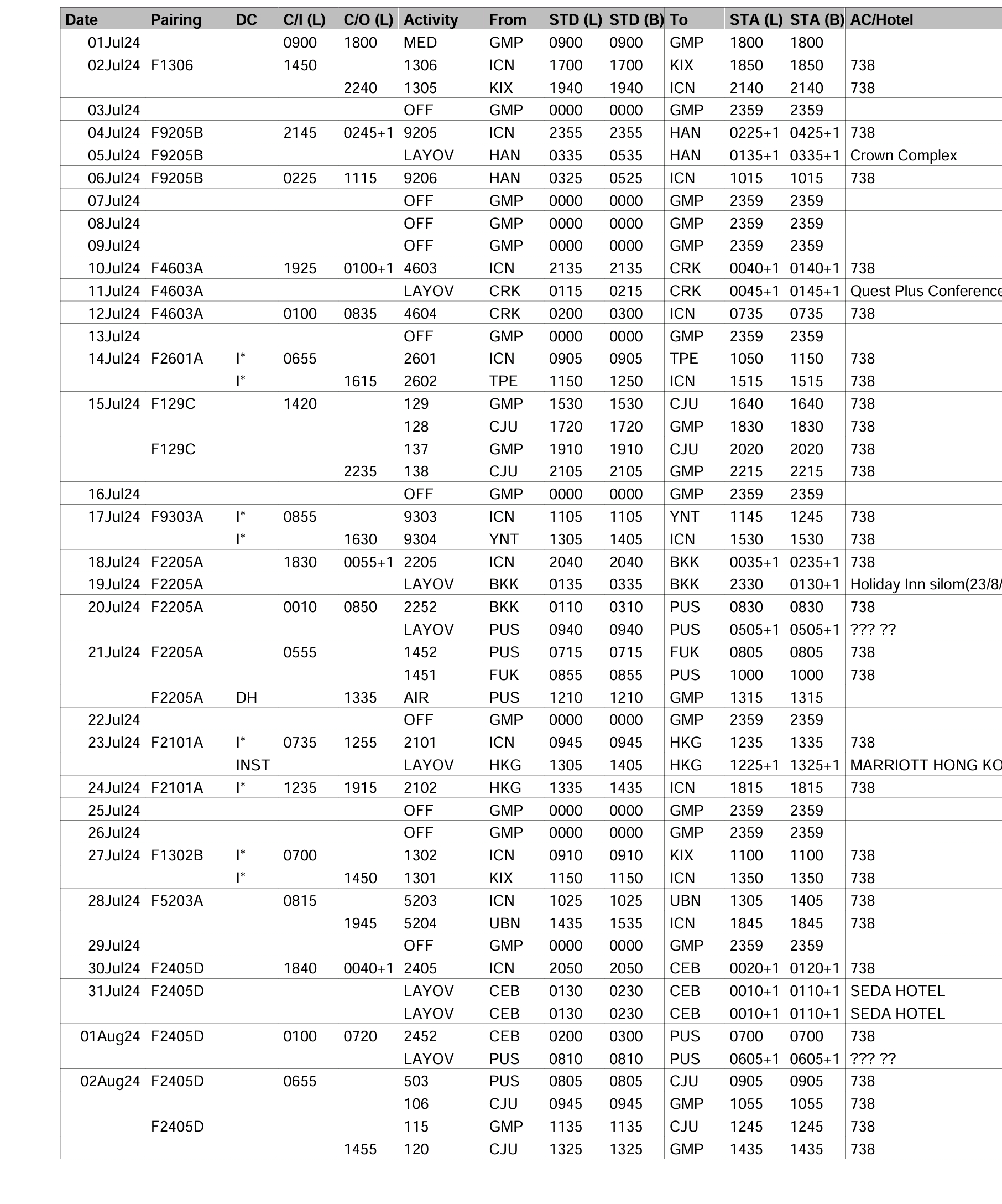 내가 받아본 일정표는 마치 엑셀로 뽑아놓은 것처럼 보기에 불편했으며 항공사에서는 이를 관리할 수 있는 서비스가 전혀 없었다.