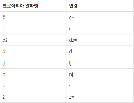 String[] cro= {"c=","c-","dz=","d-","lj","nj","s=","z="}; //예외 글자 선언하고