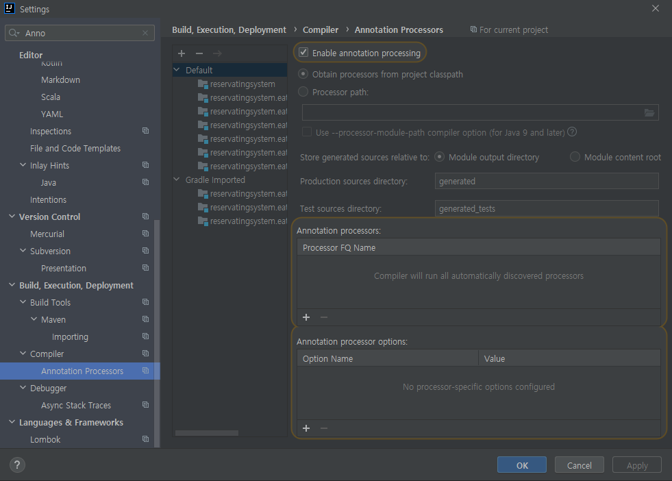 1. Setting > Annotaion Processors > Enable annotaion processing 체크박스에 체크 할 것